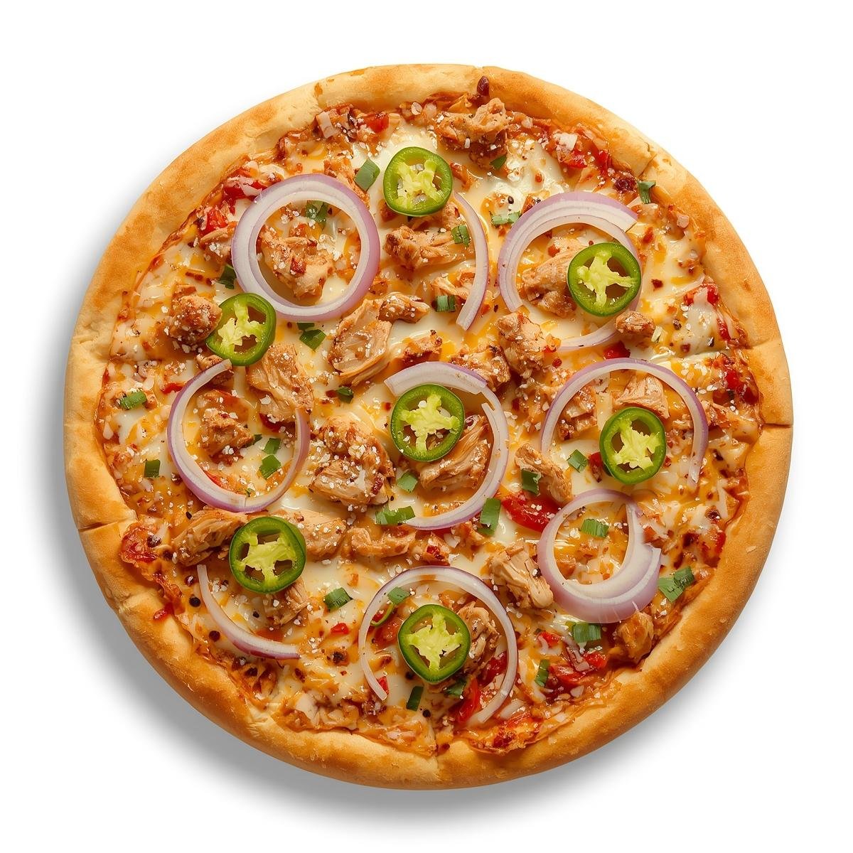 BBQ-Sauce, Paprika, Zwiebel, Mais, Hähnchen, Jalapenos, Mozzarella