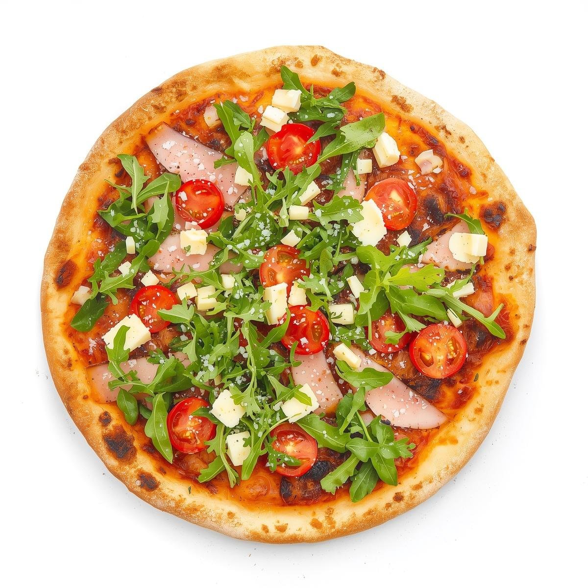 Rucola, frische Tomaten, Parmesan.Putenschinken, Balsamico-Crème