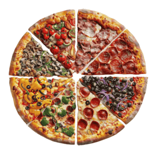 Tomatensauce, Champignons, Zwiebel,Broccoli, Paprika, Peperoni