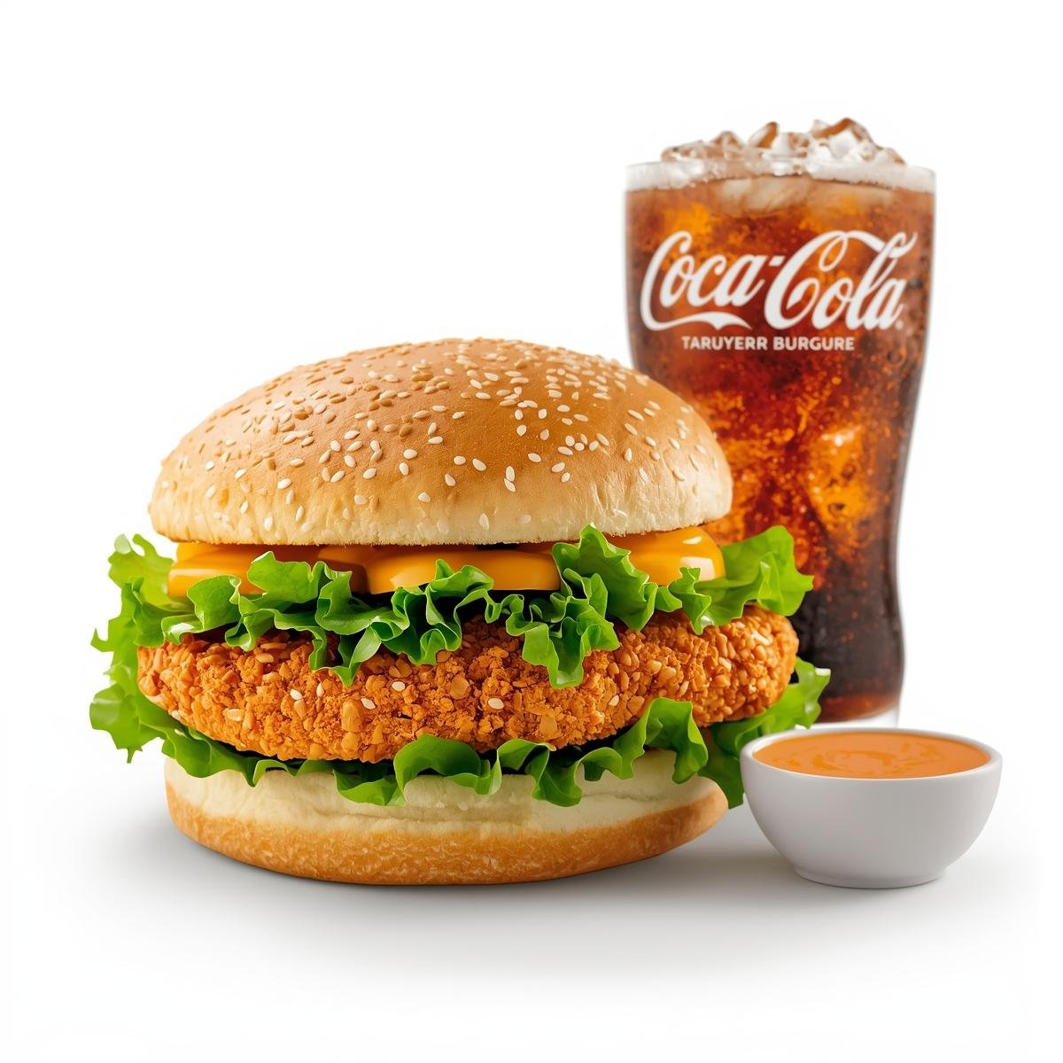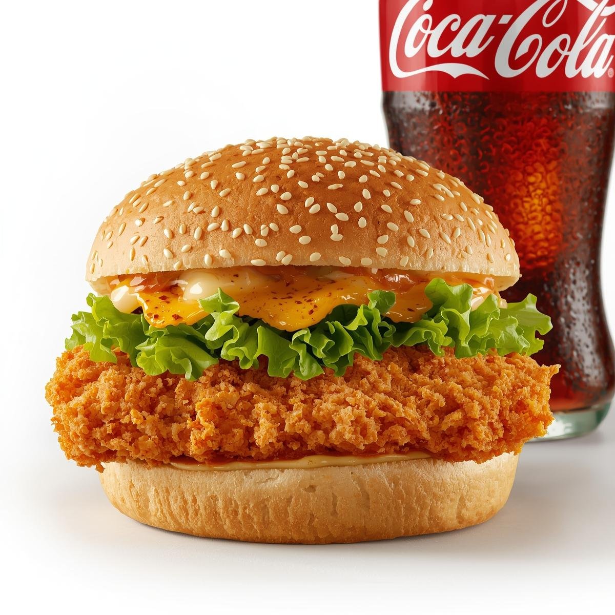 mit Chicken in einer pikanten Knusper-Panade, Salat, Tomaten und Mayonnaise