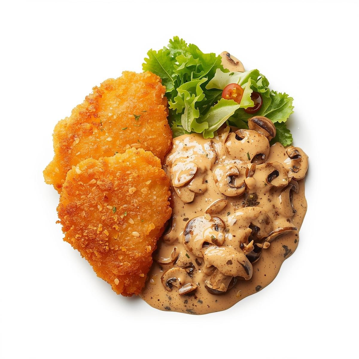 gebratenem Hühnerfleisch und Champignon-Gorgonzolasauce