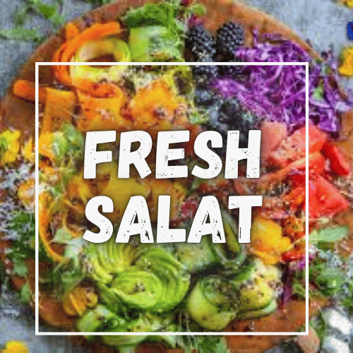 mit grünem Salat, Paprika, Zwiebeln,Karotten, Mais
